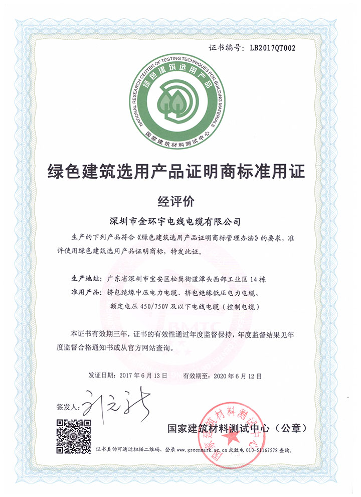 深圳市金環宇電線電纜有限公司,是一家生產各種型號電力電纜、電線 的專業廠家。自建廠以來,產品嚴格按照國家標準生產,在市場贏得很 高的信譽和市場份額。公司以科學管理、優質服務、誠信守約、持續改 進的工作方針為指導,我司通過國家質監局生產許可證;國家質檢中心 質量合格證,國家認證委員會“3C”強制認證及廣東省質監局質管體系 認證和廣東省消防認證金環宇電線電纜,質量上乘,信譽至上。